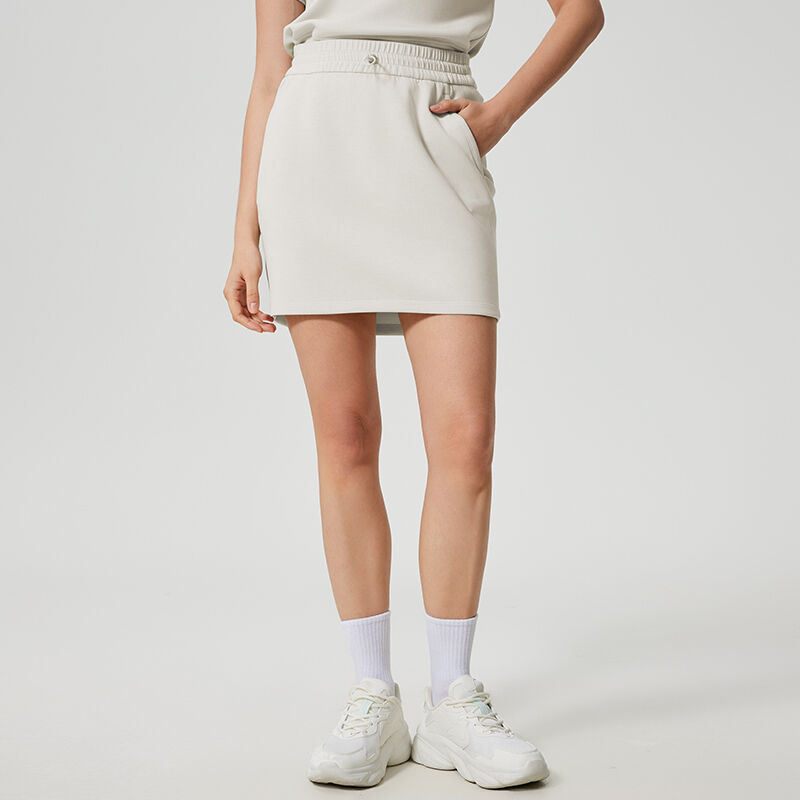 Women's Light Blue Cotton-Blend Sweat Skirt - Elastic Waist, Casual Streetwear Mini Skirt with Pockets, Comfortable Loungewear/Daily Wear for Women