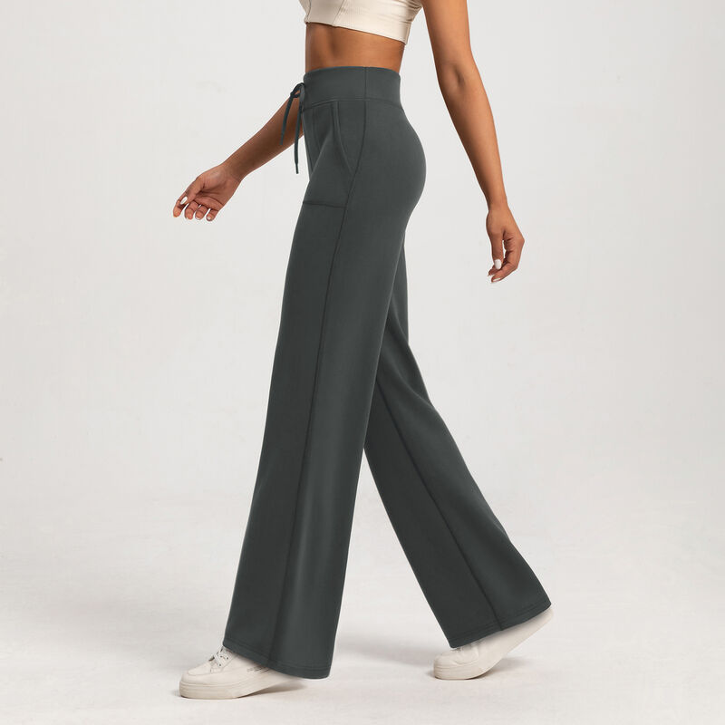Women's Dark Green High-Waisted Flared Lounge Pants - Soft Knit Fabric, Drawstring Waist, Side Pockets, Comfortable for Yoga & Daily Wear | US Google Independent Store